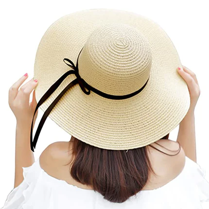 Women Wide Brim Hat Beach Cap Sun Straw Hat Floppy Foldable Hat for Outdoor Travel